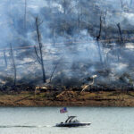 The fire ignited sprigs of grass poking from the concrete edges of Lake Oroville as gusty winds whipped up American flags lining a bend of the state’s second largest reservoir and the nation’s tallest dam.