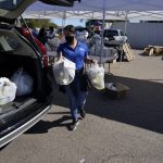 “You know what you’re signing up for in the military,” he said, after emerging from a drive-thru food distribution organized by the local Armed Services YMCA branch. “But I’m not going to lie. It’s really tough.”