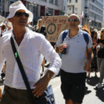 Police used bullhorns to chide participants to adhere to social distancing rules and to wear masks, apparently with little success. They tweeted that they drew up a criminal complaint against the rally’s organizer for failing to enforce hygiene rules, then said shortly afterward the organizer had ended the march.