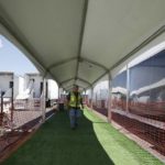 In Yuma, construction on the new 500-person tent facility in the back parking lot of a Border Patrol headquarters began about two weeks ago. Large air conditioning units set up for them hum loudly.