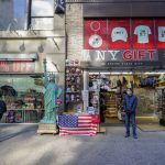 A bit farther south, near the landmark Flatiron Building, Alper Tutus sported a “New York tough” face mask as he surveyed the wares he has curated during 35 years in the electronics and souvenir business.