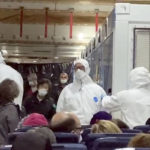 “Well, we’re exhausted, but we’re on the plane and that’s a good feeling. Pretty miserable wearing these masks though, and everybody had to go to the bathroom on the bus,” she said.