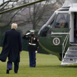 Trump left the White House around midday for the trip to the U.S. Military Academy, and as Marine One passed over a rally on the National Mall, cheers went up.