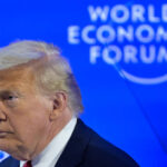 His arrival in Davos was delayed after a minor electrical problem on Air Force One forced a return to Washington to switch aircraft. As Trump’s motorcade headed down a narrow road to the speech site, onlookers — including some skiers — lined the route. Some made obscene gestures, and one held up a paper cursing the president.