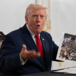 Trump brandished a print-out of a news photo of Afghan evacuees sitting on the floor of a military plane during the chaotic evacuation from Kabul in 2021 during his remarks. He suggested that the shooter was mentally unstable after the war and departure from Afghanistan.