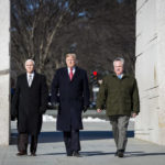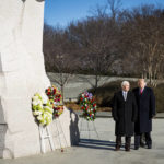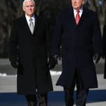 He was joined by Vice President Mike Pence, who accompanied Trump in laying a wreath at the foot of the memorial statue.