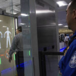 Travelers step into a separate clear glass body scanning booth with a video display inside showing how to stand when being sensed with what officials said is the type of “millimeter wave technology” already in use around the country. A reporter found it sensitive enough to identify a forgotten handkerchief in a pocket. He did not have to remove his shoes.