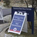 A sign also advised that the campus was closed for a private retreat and that trespassing was prohibited.