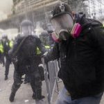 In this instance, it also left officers with little ability to resist the mob. In one video from the scene, an officer puts up his fists to try to push back a crowd pinning him and his colleagues against a door. The crowd jeers, “You are not American!” and one man tries to prod him with the tip of an American flag.