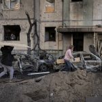 A video posted by Ukrainian police showed them surveying damage in Makariv, including to the town’s police station, which an officer says took a direct hit to its roof. The police drove by destroyed residential buildings and along a road pocked by shelling. The town appeared all but deserted.