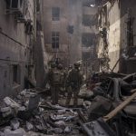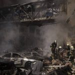 It was not immediately clear from the ground what was hit in Saturday’s strike on Kyiv’s Darnytskyi district. The sprawling district on the southeastern edge of the capital contains a mixture of Soviet-style apartment blocks, newer shopping centers and big-box retail outlets, industrial areas and railyards.