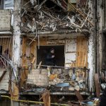 Residents of a Kyiv apartment building woke to screaming, smoke and flying dust. What the mayor identified as Russian shelling tore off part of the building and ignited a fire.