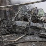 Elsewhere in Kyiv, the body of a dead soldier lay near an underpass. Fragments of a downed aircraft smoked amid the brick homes of a residential area. Black plastic was draped over body parts found beside them. People climbed out of bomb shelters, basements and subways to face another day of upheaval.