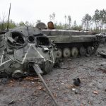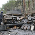 On the outskirts of Kyiv, signs of fierce fighting were everywhere in the wake of the Russian redeployment. Destroyed armored vehicles from both armies left in streets and fields and scattered military gear covered the ground next to an abandoned Russian tank.