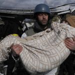 In Mariupol, a strategic city of 430,000 people on the Sea of Azov, local authorities hurried to bury the dead from the past two weeks of fighting in a mass grave. City workers dug a trench some 25 meters (yards) long at one of the city’s old cemeteries and made the sign of the cross as they pushed bodies wrapped in carpets or bags over the edge.