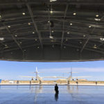 There’s also space behind two massive sliding doors to accommodate two of Virgin Galactic’s carrier planes and a fleet of six-passenger rocket ships.