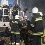 One strike appeared to target the city’s heating network, hitting an operations center. Another slammed into a four-story residential building, ripping a large hole in it and collapsing at least three apartments on top of each other. Four bodies were recovered, including those of a woman who was 6 months pregnant and her husband, Klitschko said. An older woman and another man also were killed there.
