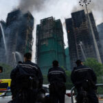 Seven of the eight 32-story towers in the building complex were engulfed in flames after construction materials and bamboo scaffolding caught fire. Officials said that extreme heat was hampering rescue efforts.