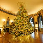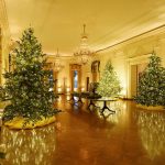 Trees and other decorations in the East Room feature planes, trains and automobiles — including models of Air Force One — in a nod to triumphs in innovations and technology. Wrapped gifts beneath decorated trees lining the Cross Hall bear tags that say “peace,” “love,” “faith” and “joy.”