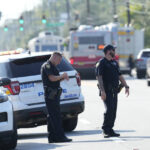 Waters said the shooter, who was in his 20s, used a Glock handgun and an AR-15 semi-automatic rifle with at least one of them painted with a swastika. He was wearing a bullet-resistant vest. He said the shooter had once been involved in a 2016 domestic violence incident and was once involuntarily committed to a mental hospital for examination. He did not provide further details on those incidents.
