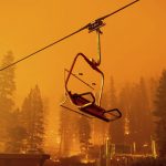Flames churned through mountains just a few miles southwest of the Tahoe Basin, where thick smoke sent tourists packing at a time when summer vacations would usually be in full swing ahead of the Labor Day weekend.