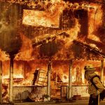 Cagle said structures had burned in Doyle, but he didn’t have an exact number. Bob Prary, who manages the Buck-Inn Bar in the town of about 600 people, said he saw at least six houses destroyed after Saturday’s flareup. The fire was smoldering Sunday in and around Doyle, but he feared some remote ranch properties were still in danger.