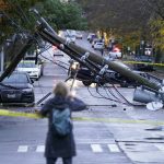 The pole toppled onto a passing truck and a nearby building. No injuries were reported, Seattle Fire Department spokesperson David Cuerpo told The Seattle Times.