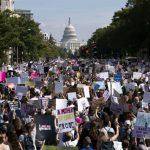 “Shame, shame, shame!” marchers chanted while walking past the Trump International Hotel on their way to the Supreme Court. Some booed and waved their fists at the Trump landmark.