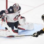 After Acciari won a faceoff in Columbus’ right circle, linemate Blake Lizotte claimed possession on the near wall and made a power move to the cage against Blue Jackets rookie defenseman Denton Mateychuk. Lizotte attempted a forehand shot that was blocked by Blue Jackets defenseman Ivan Provorov. As Matecyhuk fell into Merzlikins, Acciari, stationed above the crease, calmly swatted in a backhander off the rebound. Lizotte logged the lone assist.