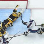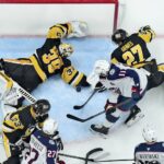 After Danforth won a faceoff in the Penguins’ right circle, the puck slid to the center point where Blue Jackets defenseman Damon Severson whacked a one-timer at the cage. Acciari partially blocked the puck, which made its way on net thanks to Olivier deflecting it. Nedeljkovic made the initial save and denied Danforth on the ensuing rebound. Penguins defenseman Conor Timmins tried to mash the puck into Nededeljkovic’s blocker to freeze play but wound up directing the puck into the cage. Danforth was credited with the score off assists from Olivier and Severson.