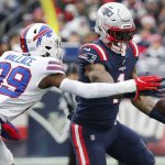 The Patriots got it to 26-21 with 7:37 to play on Damien Harris’ 8-yard TD run, his second of the game, but rookie quarterback Mac Jones struggled to find openings against the Bills’ top-ranked defense, ending his day making 14 of 32 passes for 145 yards and two interceptions.
