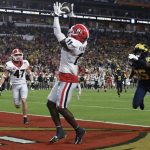 Georgia grabbed a two-touchdown lead, hitting Michigan with some of the trickery the Wolverines have used so well this season. Tailback Kenny McIntosh swept to the right and let loose a perfect pass to Adonai Mitchell for an 18-yard TD that made it 14-0 less than five minutes into the game.