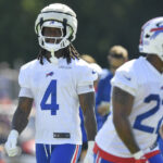 After practicing fully during the Bills’ first eight sessions of training camp this year, Cook began his “hold-in” on Aug. 3 by watching practice wearing a white sweatsuit along the sideline.