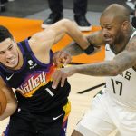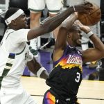Down 10 with just under 3 1/2 minutes remaining, the Suns got a 3 from Booker and a basket by Paul to cut it to 120-119 with 56 seconds to play. Holiday missed a jumper, but that didn’t matter once the defensive ace of the Bucks backcourt took it back from Booker.