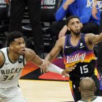 Milwaukee was at 62.1% shooting after three quarters, threatening to challenge Orlando’s 62.5% mark against the Lakers in Game 3 of the 2009 finals. Holiday’s basket had the Bucks in good shape at 108-94 with about 9 minutes remaining, but the Suns put together a push in the final minutes.