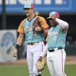 “It’s cool to see him work like he’s not a top prospect,” Mangum said. “I’ve been with a lot of top prospects over the years, and I’ve been fortunate to play with some really cool teammates that have all worked hard. Anyone in the big leagues works really hard — and he’s no exception. He works really hard and he’s really talented. That’s a dangerous mix when you have those two things.”