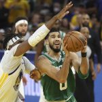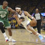 Marcus Smart scored 18 points with four 3s for Boston. The Celtics star took criticism from Kerr for what the Golden State coach called “a dangerous play” lunging at Curry’s left foot on March 16 in a 110-88 Boston rout that sidelined the 2021 scoring champion for a month before his return in Game 1 of the first round facing Denver.