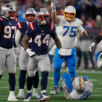 The Chargers only got deep into Patriots territory twice — the first time in the first quarter when Daiyan Henley intercepted a tipped pass from Drake Maye and set up the Los Angeles offense at the New England 10. The drive stalled at the 2, Harbaugh went for it on fourth down and Herbert’s pass fell incomplete.