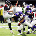 MINNEAPOLIS — Anthony Harris highlighted a thorough thrashing by Minnesota’s defense with two interceptions of Matt Ryan and a fumble recovery.