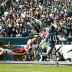 Jackson blew past the defense on a third-and-10 in the third quarter, caught Wentz’s pass inside the 10 and strolled into the end zone to give the Eagles a 21-20 lead. The 53-yard TD reception was Jackson’s second of 50-plus yards in the game and the 31st of his career. Only Hall of Famer Jerry Rice had more at 36.
