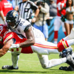 Sammy Watkins caught nine passes for a career-high 198 yards and three TDs. Watkins slipped through the middle of Jacksonville’s defense for a 68-yard score on the third play of the season and added a 49-yard TD reception late in the opening quarter. He made defenders Ronnie Harrison, Jalen Ramsey and Miles Jack look silly while strolling into the end zone twice. He beat Ramsey again for a short TD in the fourth period.