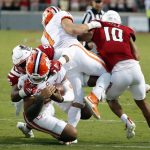 Clemson’s top-10 streak was tied with Alabama for the longest current run in college football and second-longest in the history of the AP poll, behind Miami’s 137 from 1985-93.