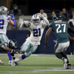 ARLINGTON, Texas — Ezekiel Elliott ran over safety Malcolm Jenkins on his way to 111 yards and a touchdown, Dak Prescott threw an easy scoring pass on a great fake to his star running back before a TD run and the Cowboys rolled to a 37-10 victory over the Philadelphia Eagles on Sunday night.