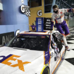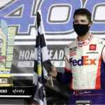 Hamlin raced to his third victory of the season and 40th overall. He opened the season with a victory in the Daytona 500 and won at Darlington last month. And when the night was over, Hamlin — who wears the Michael Jordan “Jumpman” logo on his race suit — made no secret that he’s racing with some extra energy these days.