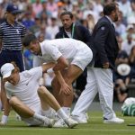 Sinner’s play, meanwhile, dipped. His form at the net, so good early, faltered: He was successful on 14 of 17 trips forward over the first two sets but 8 of 18 in the last three. He caught a toe in the grass and turned his left ankle on one push forward, falling and immediately clutching his ankle; Djokovic climbed over the net to help Sinner get up. That did not seem to affect Sinner’s footwork, though.