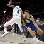 Curry’s 3-pointer made it 98-87 with just under five minutes to go, and Portland struggled to catch up — similar to their fourth-quarter fade in Game 2.