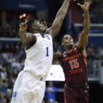 The Hokies had their chances in the closing seconds, the final one coming on an inbounds play with 1.1 seconds left. The ball went to Ahmed Hill as he jumped to the basket, but his attempt to tie it failed. Hill dropped to the court on his back as Williamson — fittingly — grabbed the basketball and smiled broadly. It was similar to the way two last-gasp shots went off the rim for Duke’s second-round opponent, UCF.
