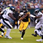 The line contributed to the offense’s issues while the “starters” were in the game. A holding call against rookie tight end Pat Freiermuth negated a long run by Harris on the first series. A holding call against Turner wiped out another first-down run by Harris on the second drive. Okorafor had a false start on the third series.