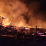 The fire caused the structure to collapse. The cause is under investigation.