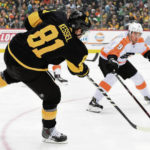 In the outdoor game Feb. 23 in Philadelphia, Jakub Voracek scored on a bad-angle shot with 19.7 seconds to go, and the Flyers won 4-3 in overtime.